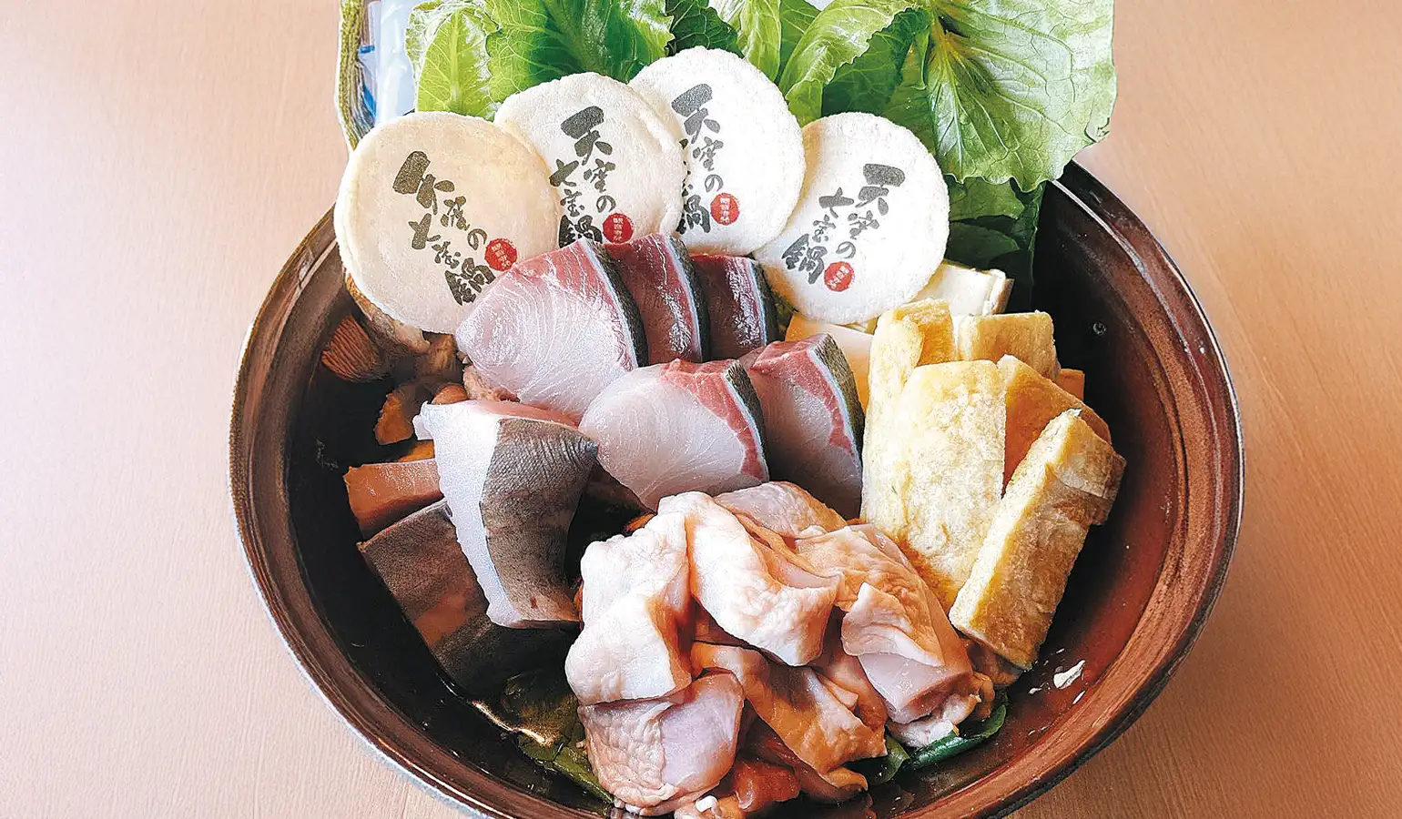観音寺市の様々な企業さんがコラボして生まれた【天空の七宝鍋】(予約のみ)にもあみ屋では地魚をプラスして、いりこ出汁と魚介の出汁でより深い旨味を感じられる仕上がりとなりました。この冬1番のオススメです。