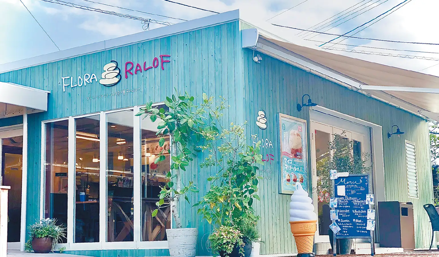 ソフトクリーム専門店として3年前にオープン。お好み焼きふろーらの奥にあり色とりどりの花が咲き誇るガーデンやウッドデッキは風を感じながらくつろいでいただくのにぴったり。常時6種類あるソフトクリームはシーズンごとにフレーバーを変え常に楽しんでいただけるよう工夫しています。シングルサイズとダブルサイズがあり、2つのフレーバーを選べるダブルサイズはお得で人気です。